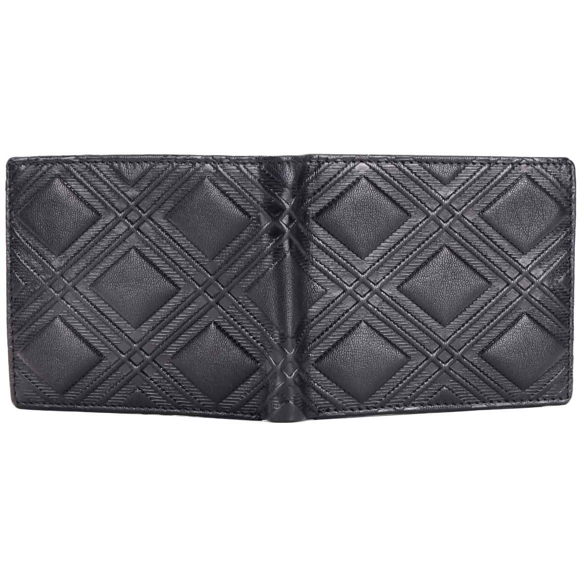 This wallet has a geometric, refined, and symmetrical diamond-shaped embossed design
