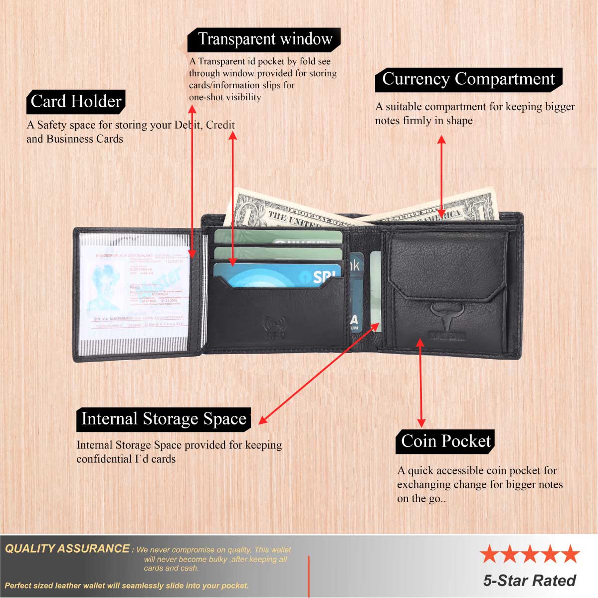 This bifold black wallet is made of pure top-grain leather, making it very long-lasting and durable. Our craftsmen's expertise has also made it one of the top-quality leather wallets in this industry.