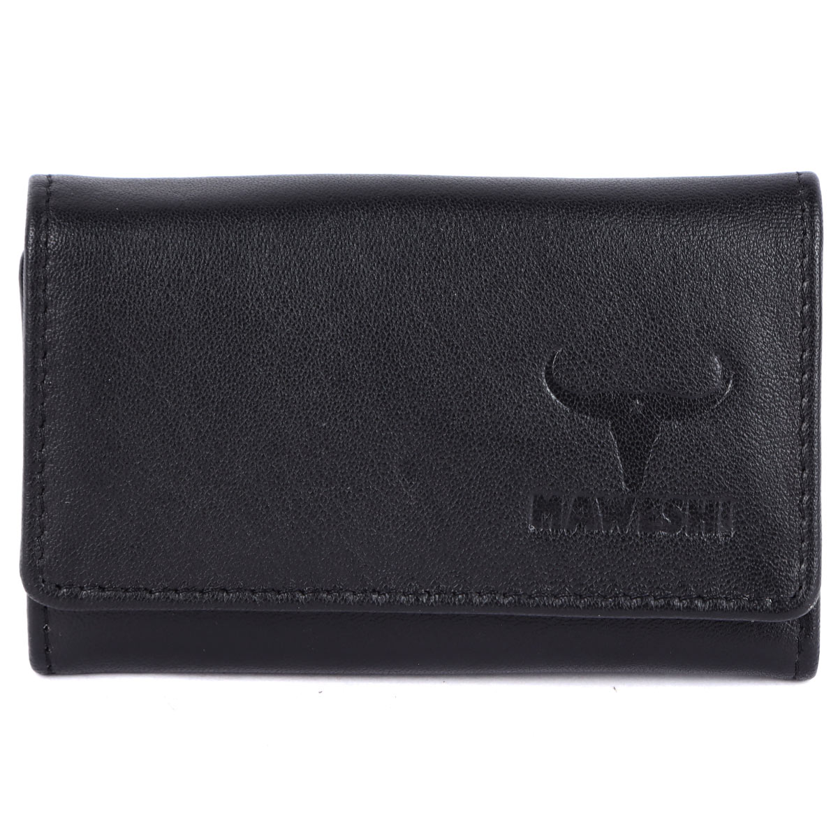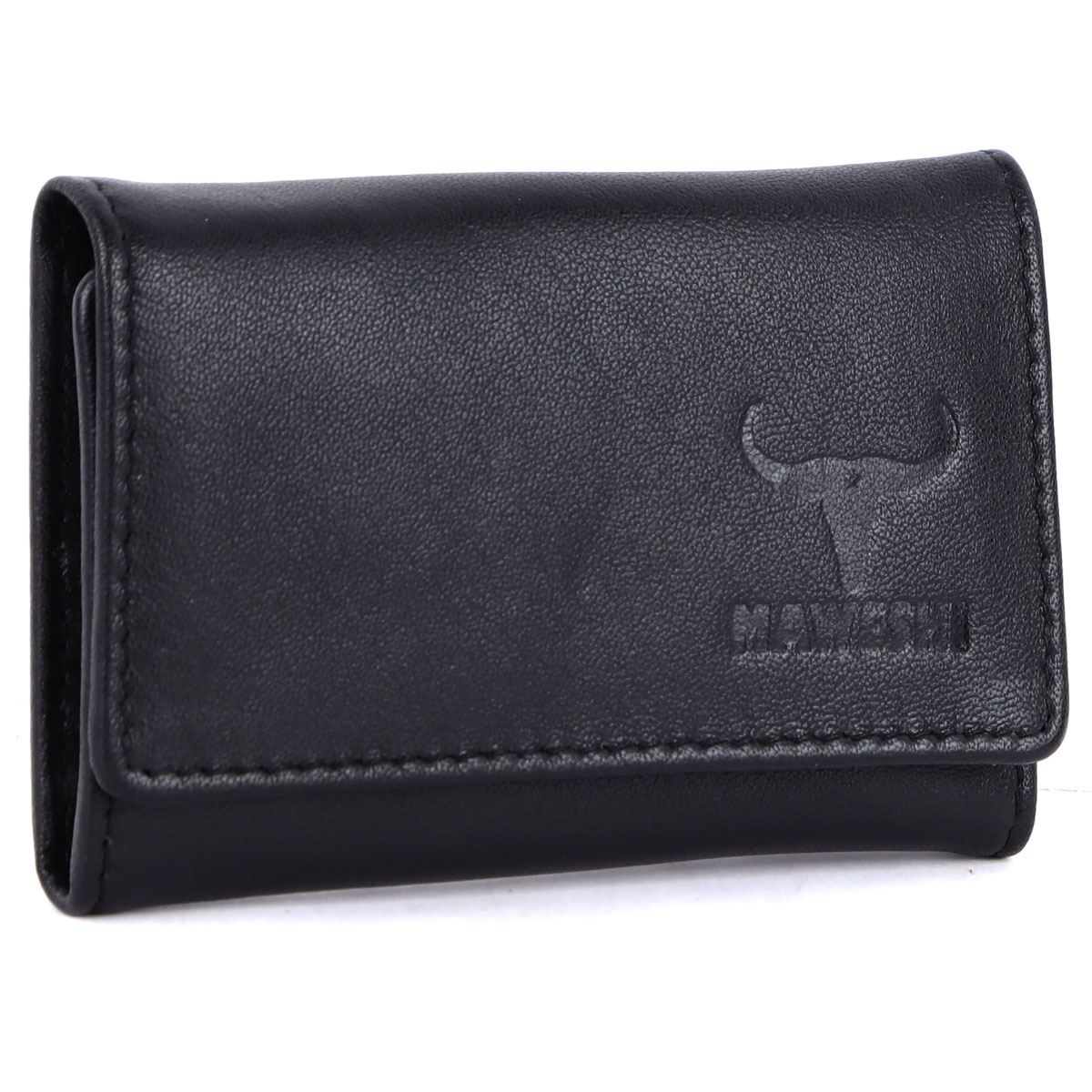 Black Leather Button Closer Keychain With 6 Keyholders And Two Card Slots - MAWESHI