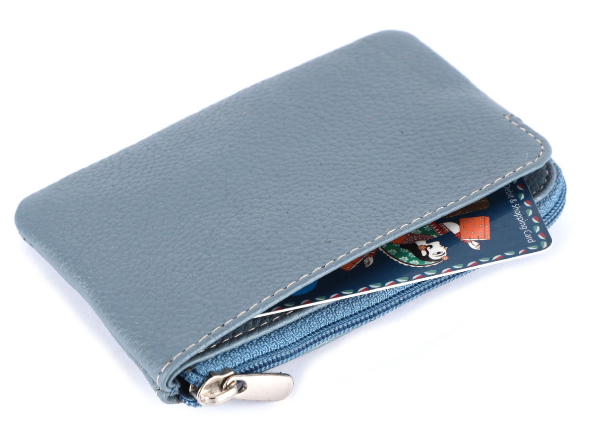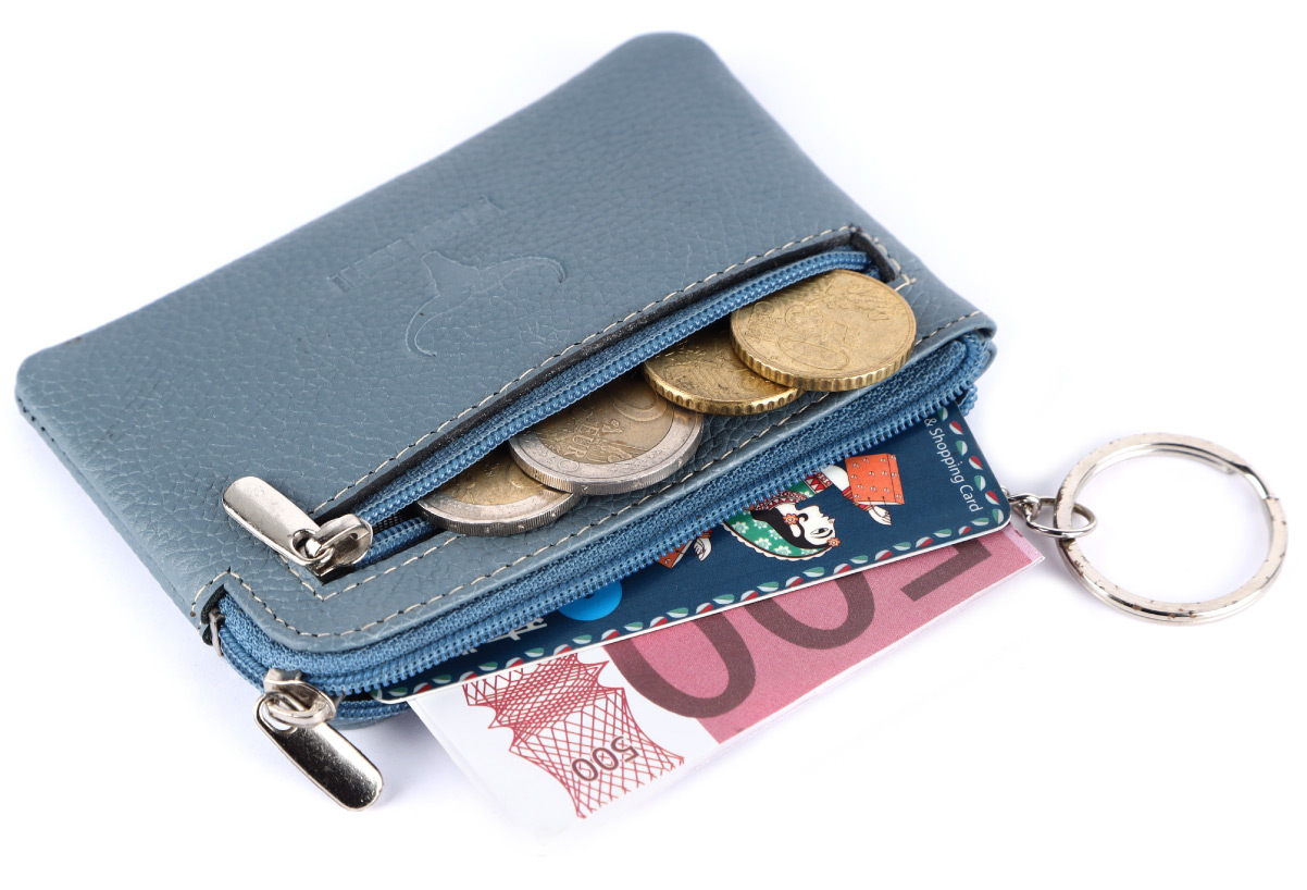 Blue Genuine Leather Coin Pouch With Inside Keychain- MAWESHI