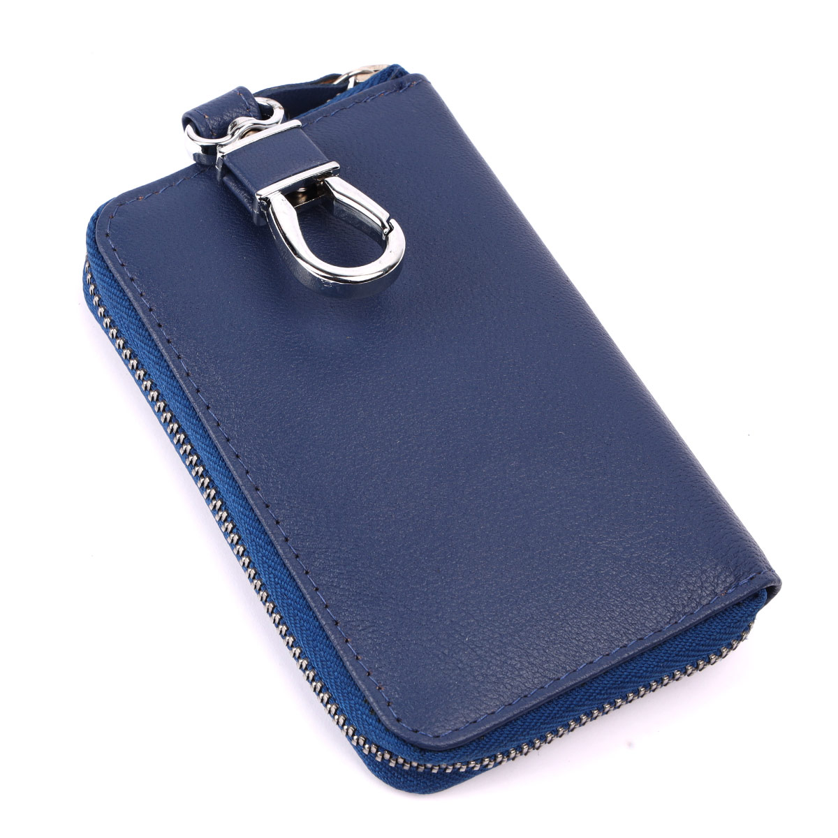 Blue Leather Zip Closer Keychain With 6 Keyholders ,two Card Slots And One Dog Hook- MAWESHI