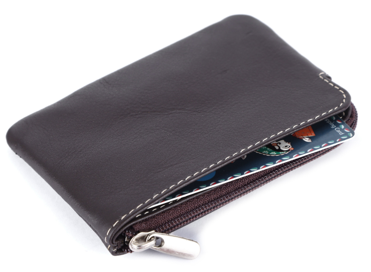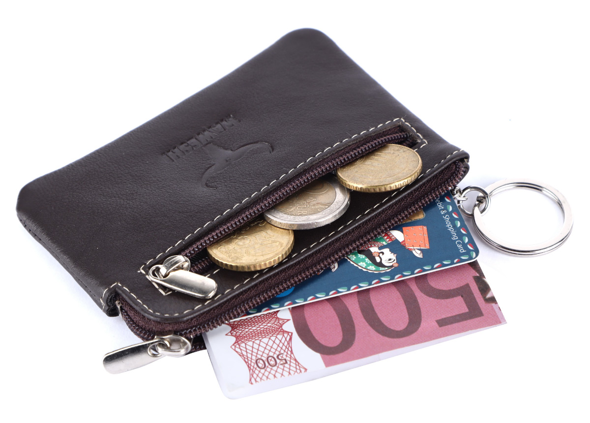 DARK Brown Genuine Leather Coin Pouch With Inside Keychain- MAWESHI