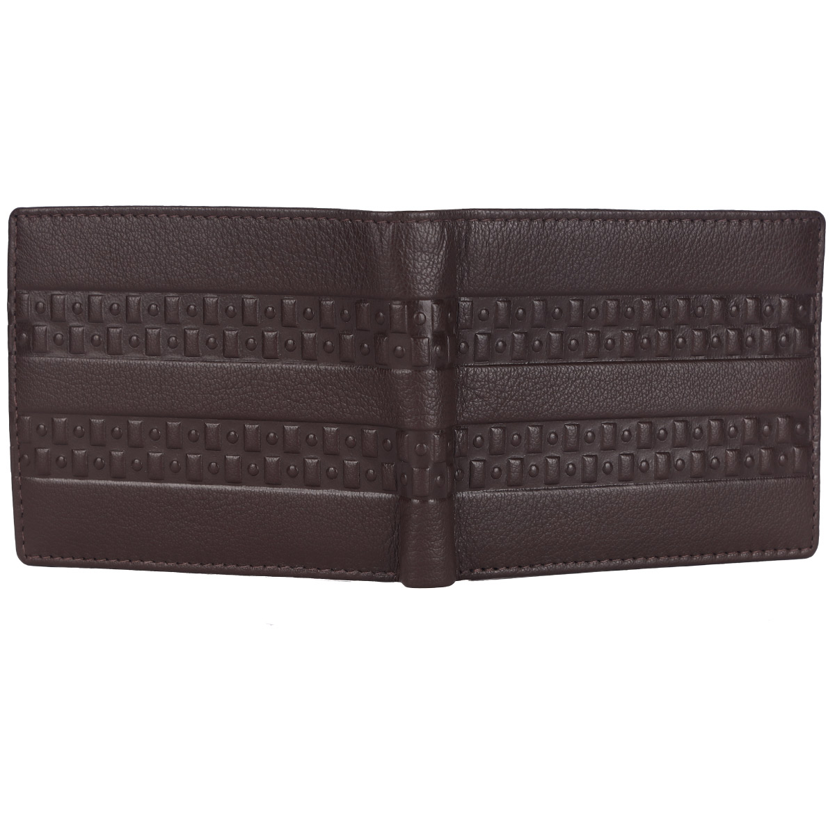 This wallet has a detailed pattern with parallel stripes and a raised rectangular shape. This design provides this wallet with a bold and strong look.