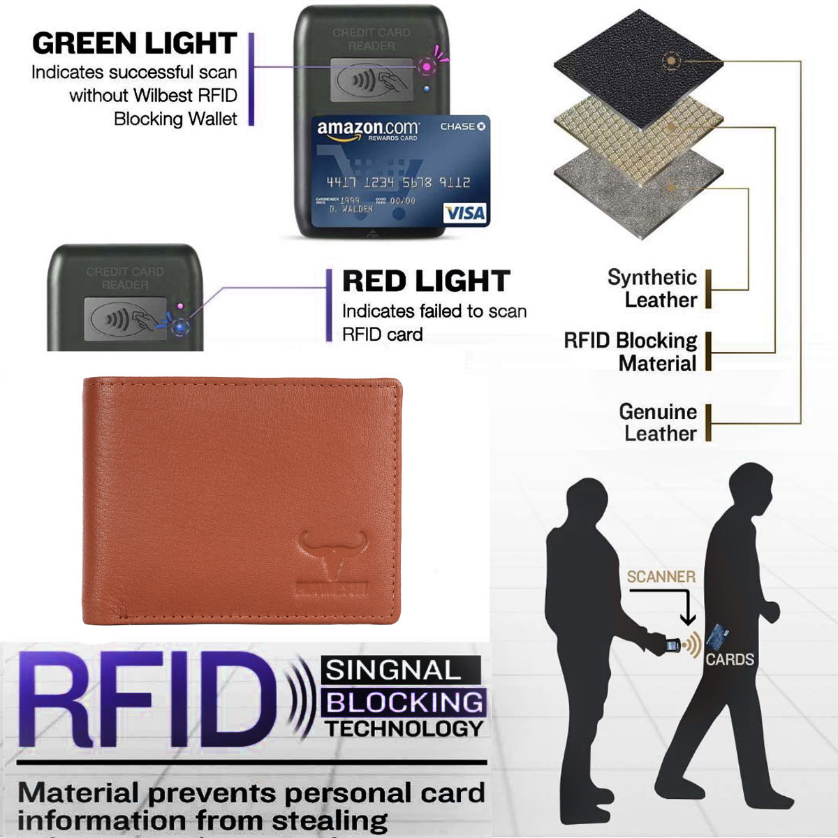 RFID BLOCKING - Our wallet adopts advanced RFID Blocking technology to protect your Smart Cards such as Debit or Credit Cards from unknown scans to protect personal privacy and prevent personal information from leaking, it is really necessary when walking out.