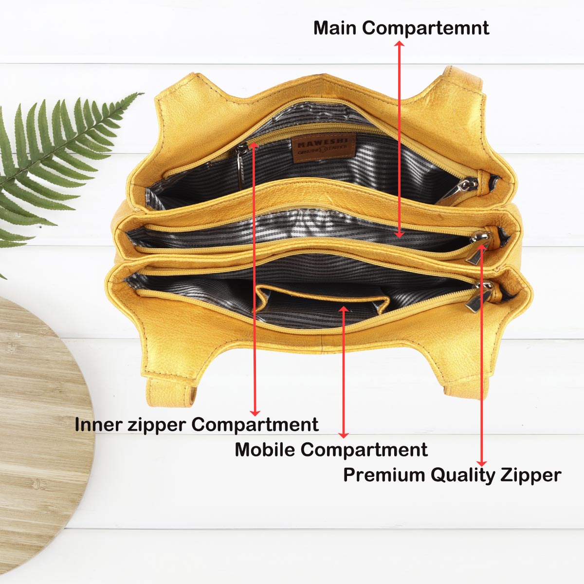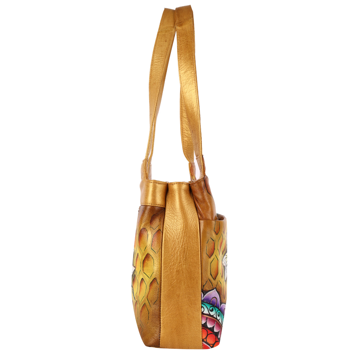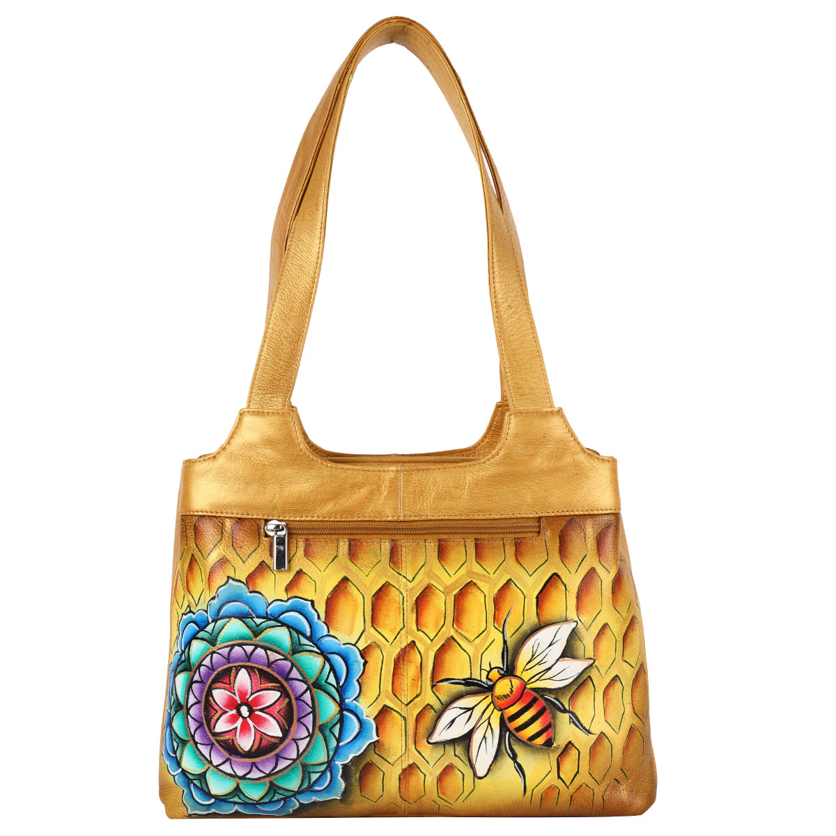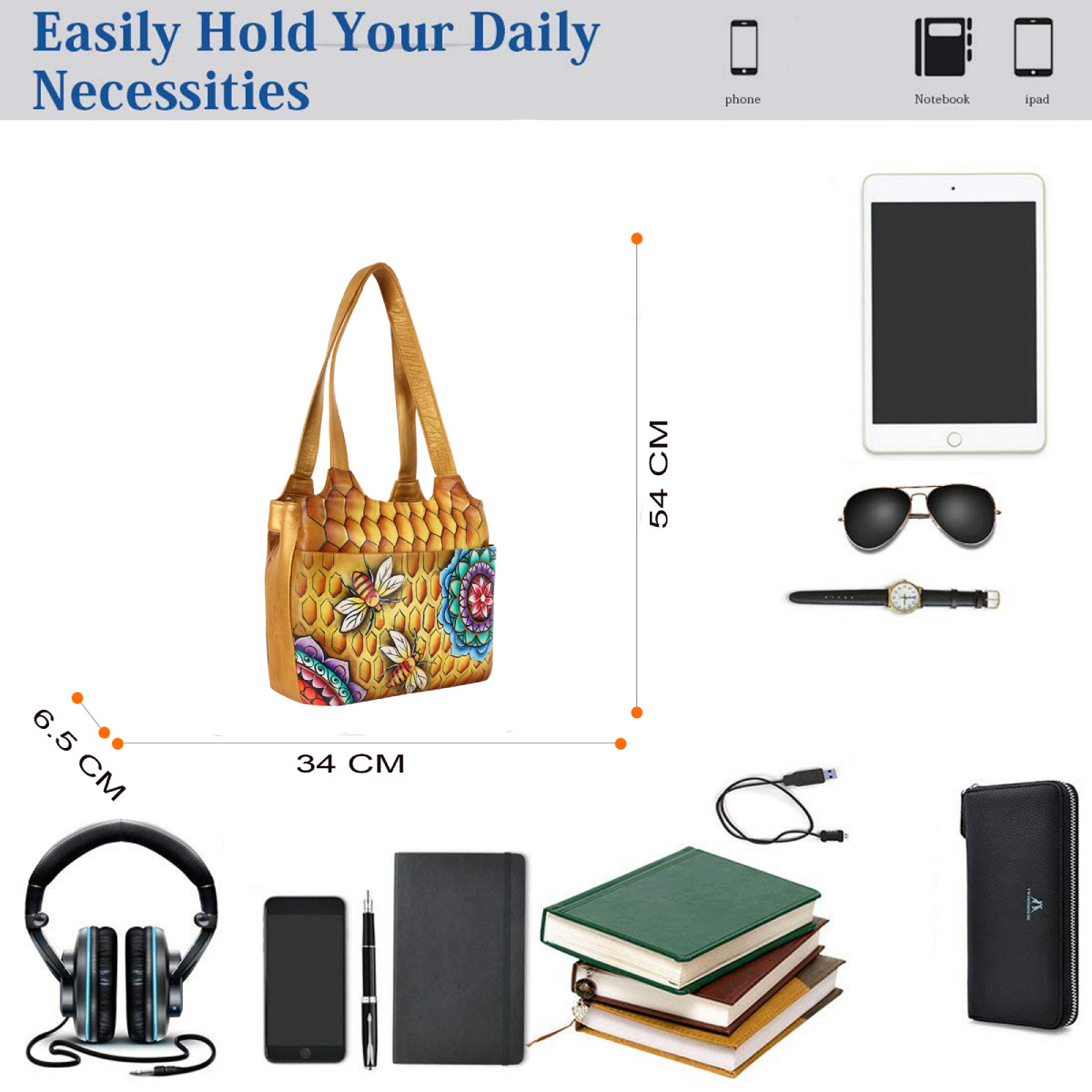 HONEY BEE Hand Painted Leather Shoulder Bag For Woman With Triple Compartment