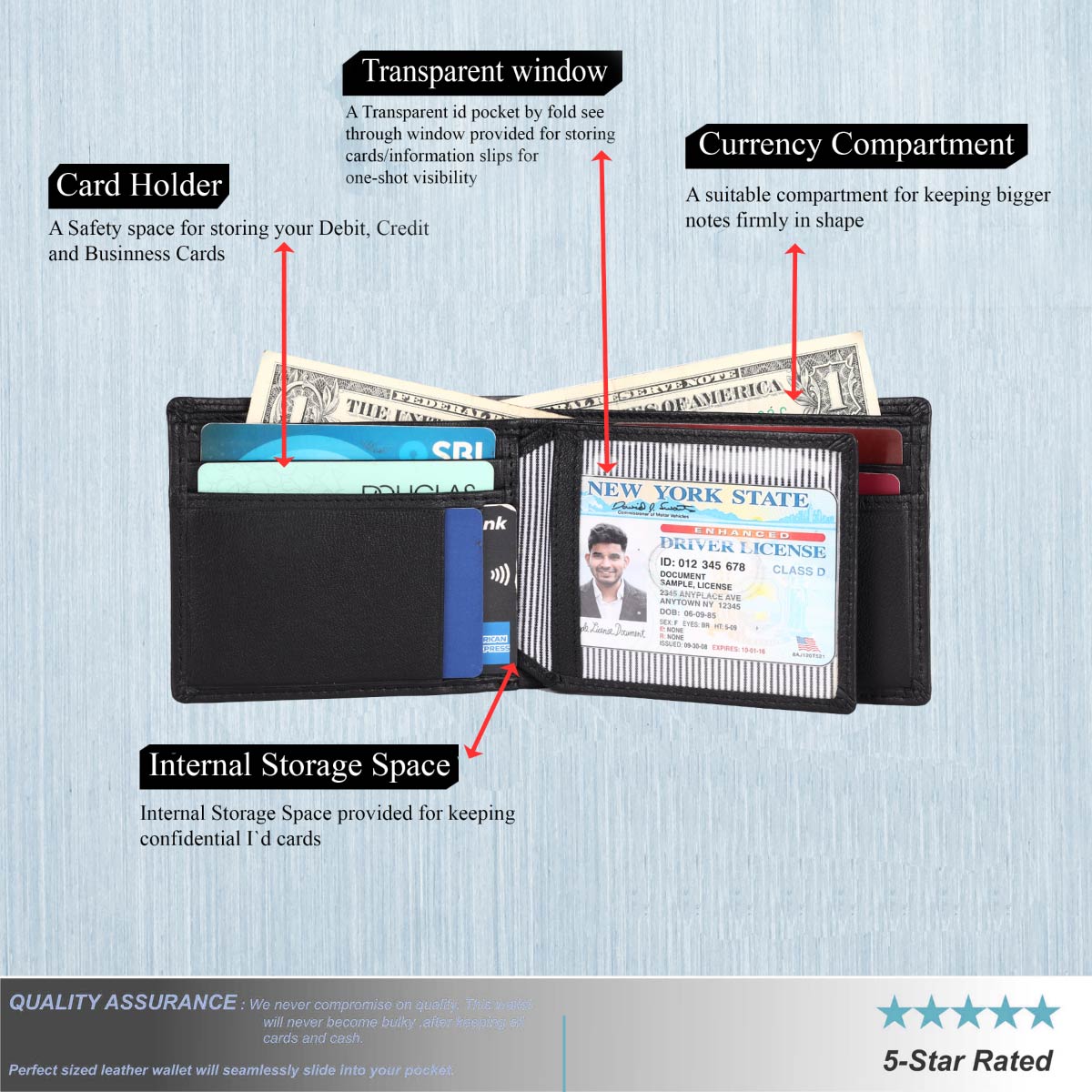 RFID BLOCKING - Our wallet adopts advanced RFID Blocking technology to protect your Smart Cards such as Debit or Credit Cards from unknown scans to protect personal privacy and prevent personal information from leaking, it is really necessary when walking out.