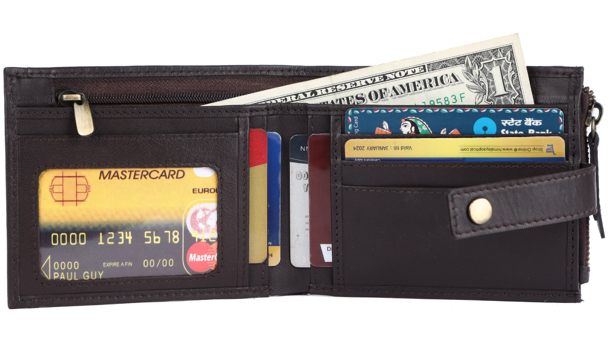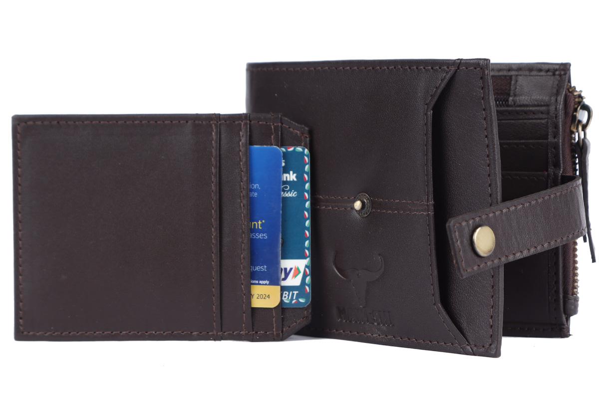 HANDCRAFTED - For busy men. Designed to provide maximum utility: 2 note slots, 5 card slots and a coin pocket. Carry cash, coins and cards.