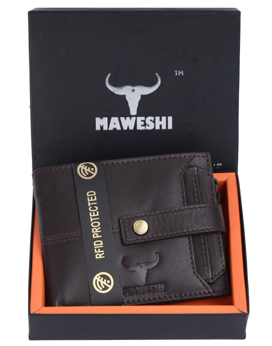 Norway Men RFID Protected Brown Bi-fold Wallet -Maweshi