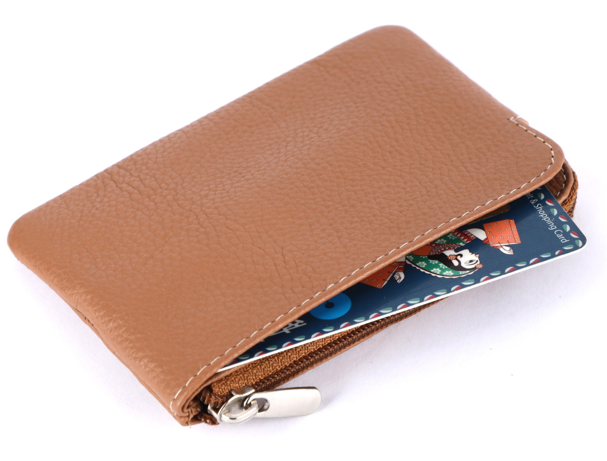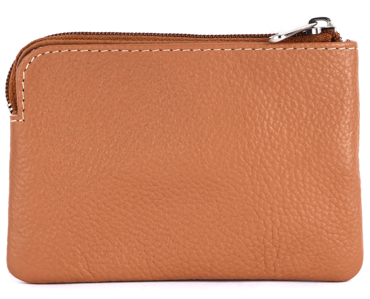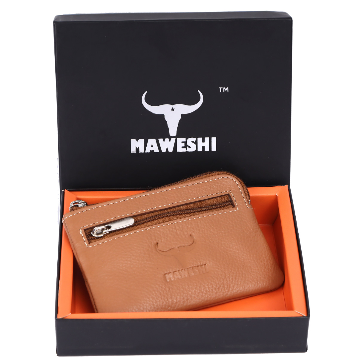 TAN Genuine Leather Coin Pouch With Inside Keychain- MAWESHI