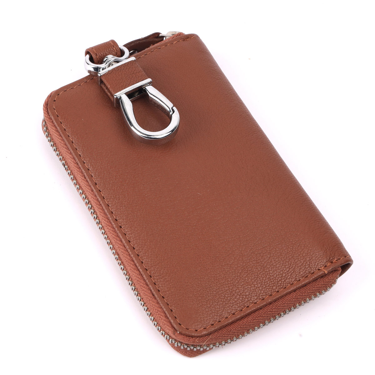 TAN Leather Zip Closer Keychain With 6 Keyholders ,two Card Slots And One Dog Hook- MAWESHI
