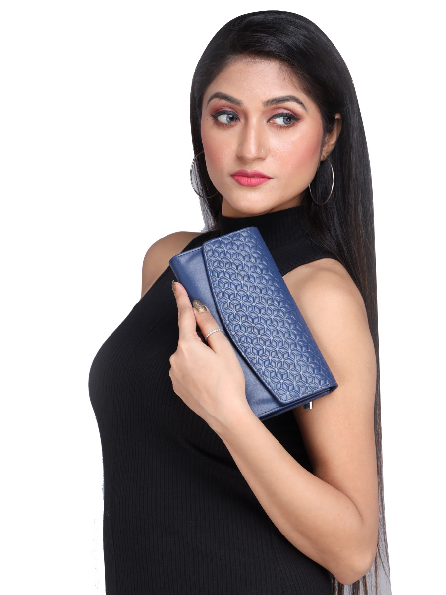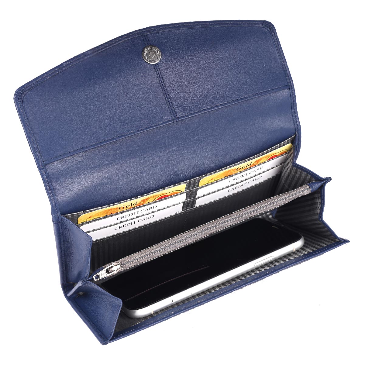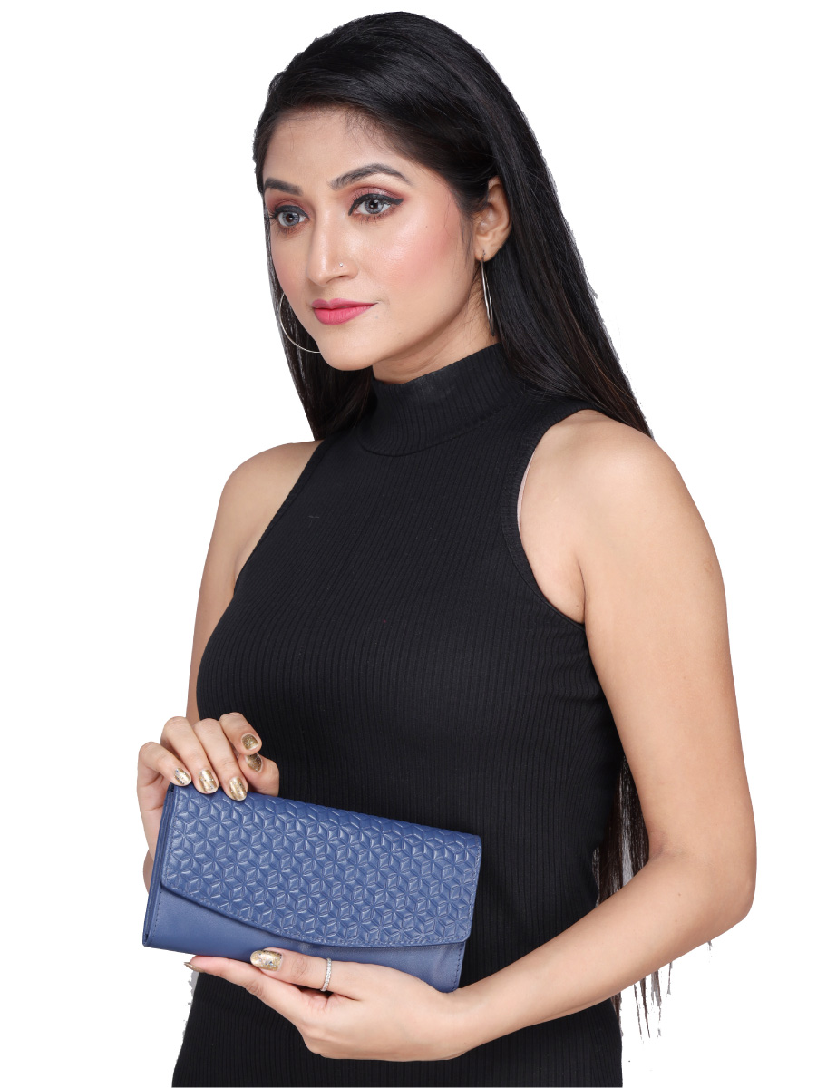 VIENNA Blue Leather Purse For Women With Multiple Compartment