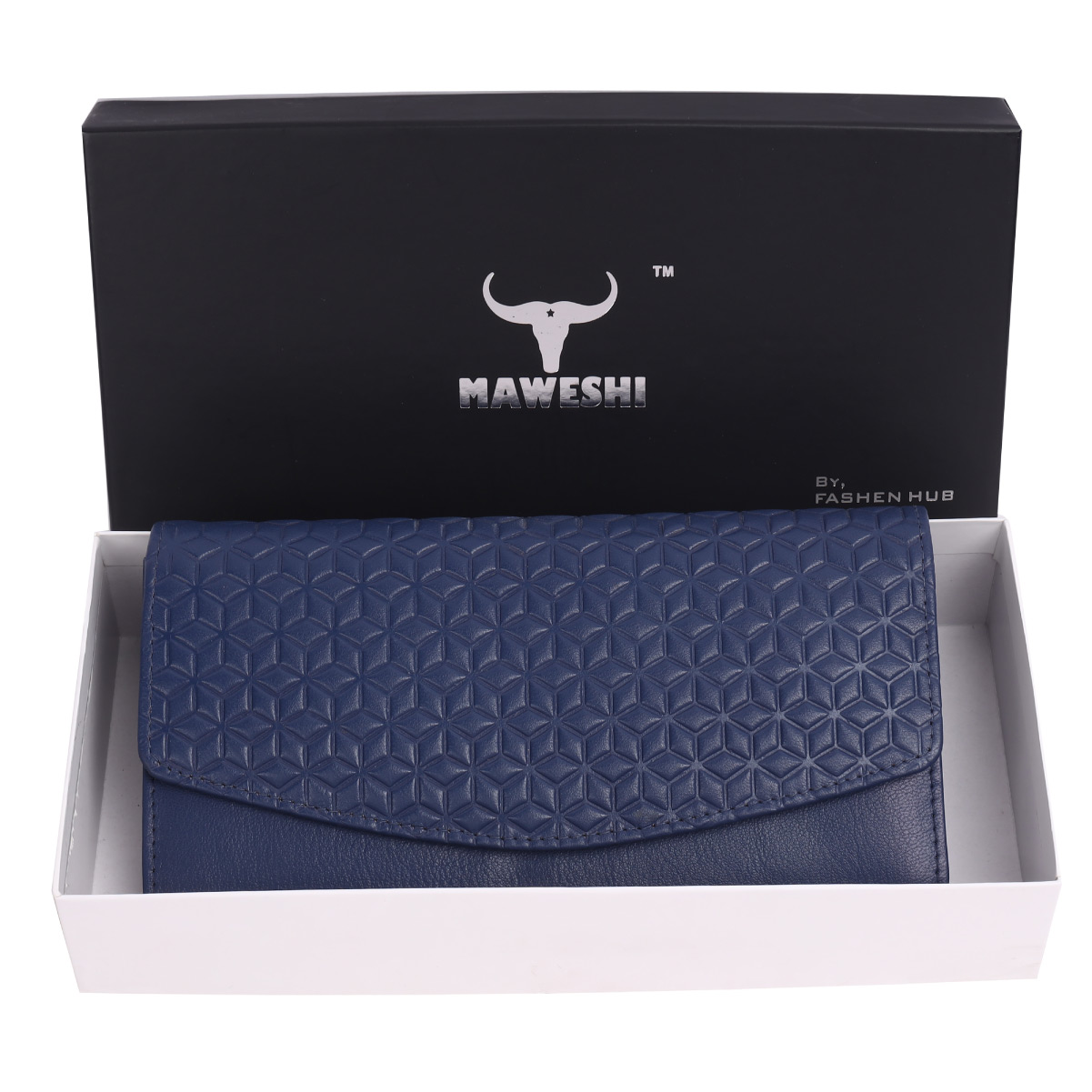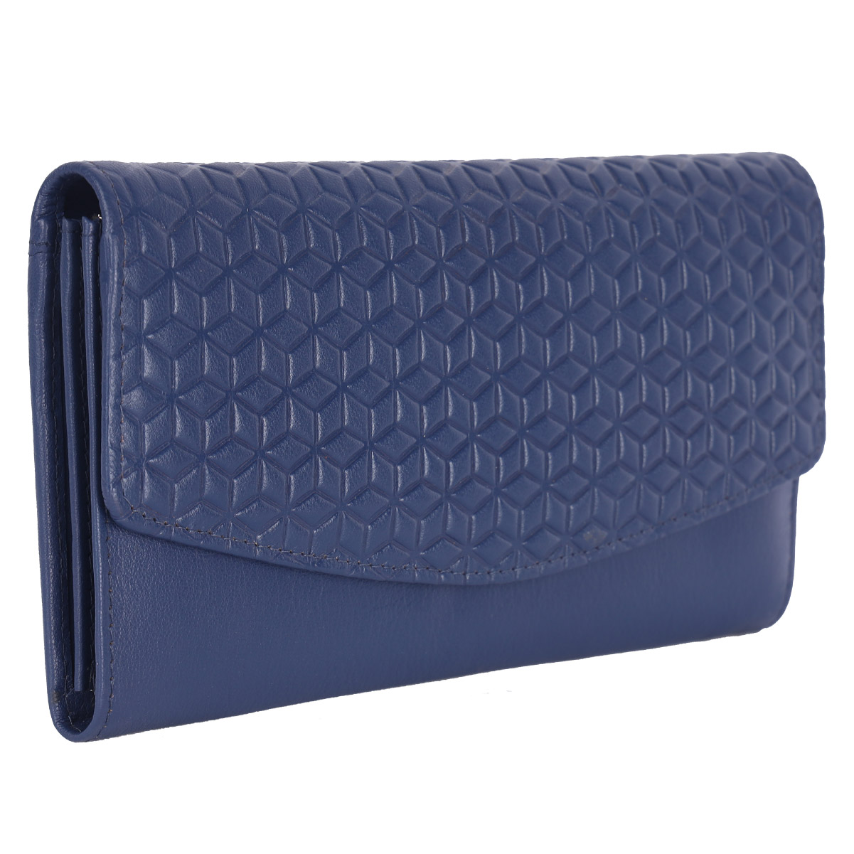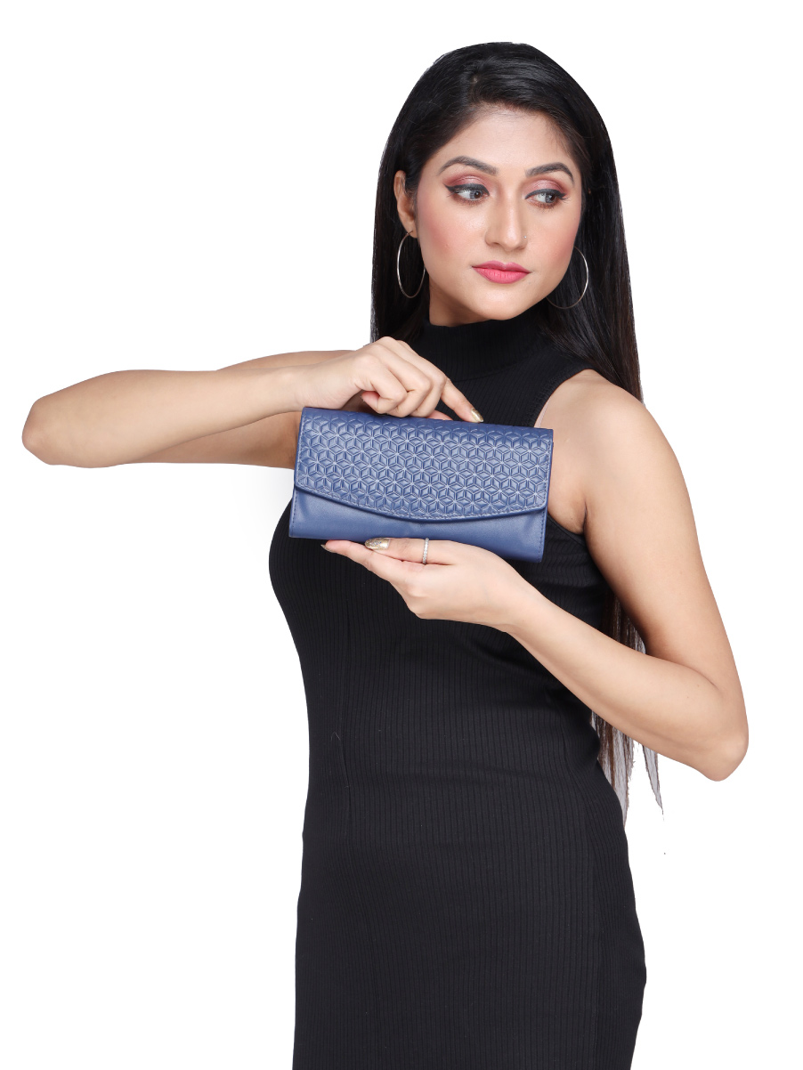 VIENNA Blue Leather Purse For Women With Multiple Compartment